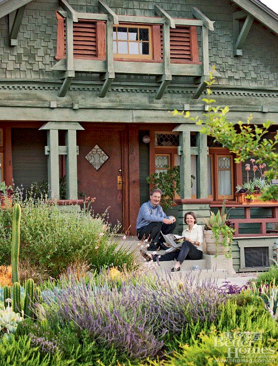 一对家住在洛杉矶的美国夫妇除去前院费水的草皮,换种需水量小的多肉植物和草本植物,以适应当地干旱的气候条件,为节约和环保做出了榜样。