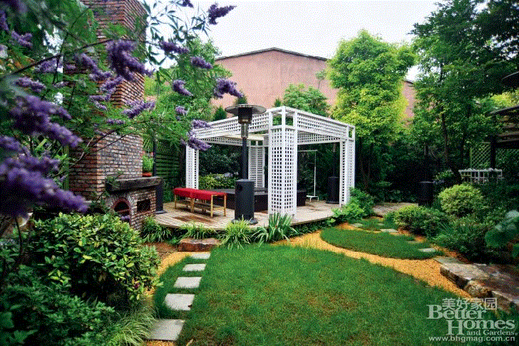 庭院绿化中的景观搭配:冬季落叶后在庭院栽植的时 候,最好事先配上一些常绿的灌木,为冬季的庭院景观着想。