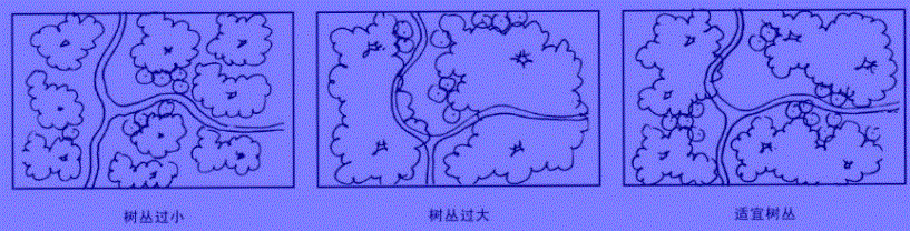 (1)树丛。树丛不易画得过大也不宜画得过小,树丛过大容易使画面显得单薄,场地有偏小的感觉树丛过小容易杂乱,画面缺乏整体性。