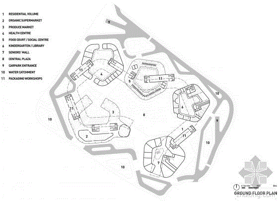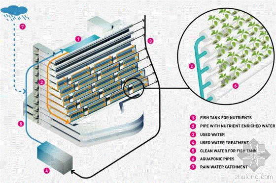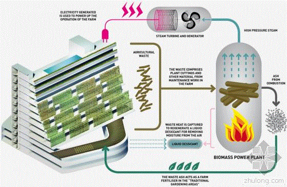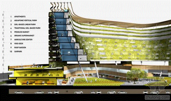 该工程也为退休后的老年人提供了大量工作岗位,想要在就业的老年人可以在专业团队的指导下获得一份新工作。面向公众的农业设施位于建筑的低层,高层才是居住区。该工程提供了一种类似社区一样的体验,有助于提高居民的健康状况和部分人群的收入。同时,住宅区与农业相结合的模式在高效的雨水处理系统和能源系统的协助下,其可持续性和高效能性进一步增强。
