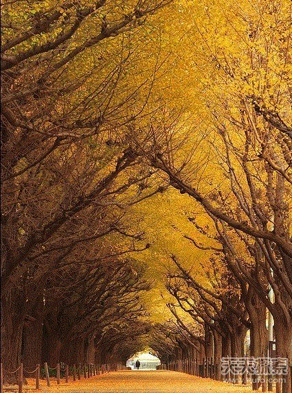银杏树在日本文化中备受尊崇。有六棵银杏树在广岛轰炸中幸存下来,并生长至今。日本人将银杏视为“希望的承载者”,而银杏也常被称为“活化石”。如今在东京市共有大约65000棵银杏树,遍布街道和公园。上图中的银杏树隧道位于明治神宫。