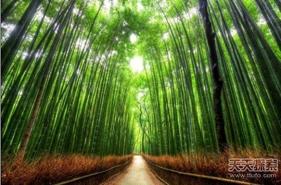 嵯峨野竹林位于日本京都的国家指定古迹岚山。上图中的小径长约500米,从日本国内最着名的竹林中穿过,也难怪日本文化厅会将岚山誉为“风光秀美”之地。驻足在竹林中,你可以听到风吹过竹叶发出的天籁之音,这一声音也被评为日本100种最值得保留的声音之一。