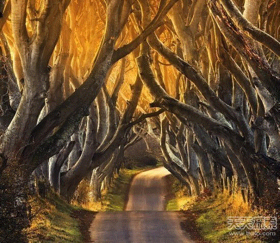 这个美幻得如同绘画的榉树隧道被当地人称为“黑暗树篱”,距今已有大约300年的历史。据称在18世纪,詹姆斯·斯图尔特种植下了150棵山毛榉,以在路途中向前来他庄园的宾客炫耀。如今这里已成为北爱尔兰的着名景点。
