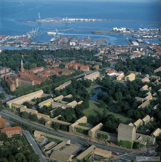 校园位于一个特别的冰碛谷周边。从环形路到Nørreport市中心,各个学院大楼和设施都建在斜坡之上。此校园公园的最初方案是由著名的丹麦景观建筑师C. Th. Sørensen设计的。1979年C. Th. Sørensen去世之前,公园的建造一直在C. Th. Sørensen、C.F. Møller和公园管理的合作下进行。在他去世之后,C.F. Møller建筑公司与奥胡斯大学员工合作继续了公园的最初方案。目前,公园成为了一个美丽的绿化空间,为奥胡斯大学和这座城市做出了巨大贡献。