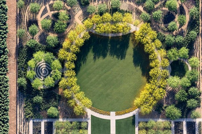 环形与规整的植物序列,形成了几何界特有的美感景观设计,很漂亮的轮廓与倒影。