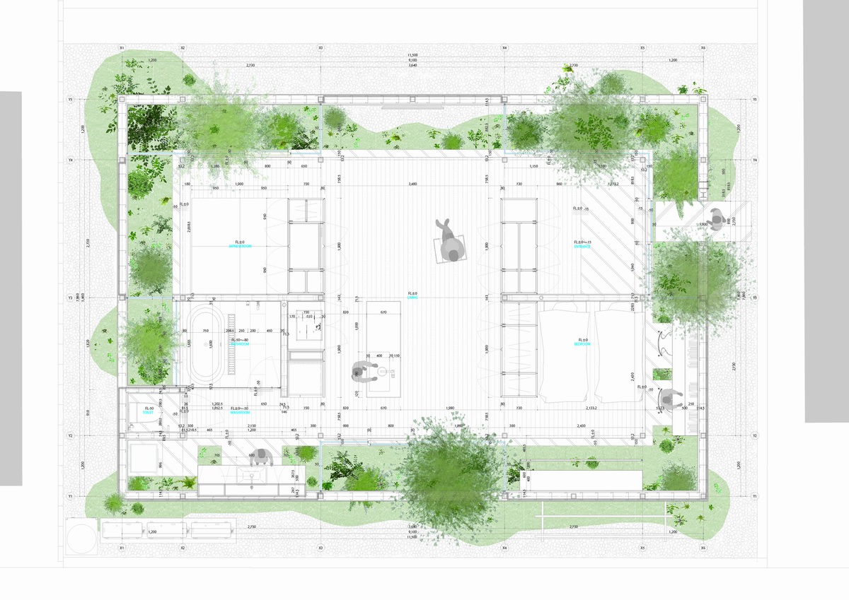 之所以这样利用人造景观将房子“包裹”起来,是因为Green Edge House的场地四周布满了邻居的住宅,私密感很糟糕,加上没有像样的视野与景观资源,迫于无奈,mA-style Architects的建筑师便采用了这样一种有趣且能解决这个问题的方法,在都市中为业主打造出一片平静安逸的居所。