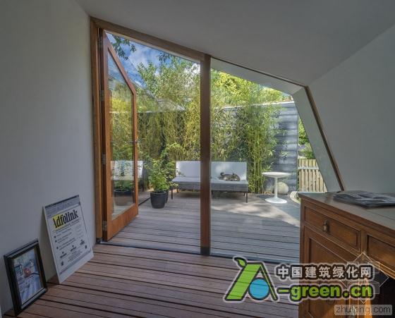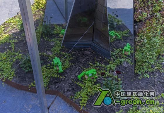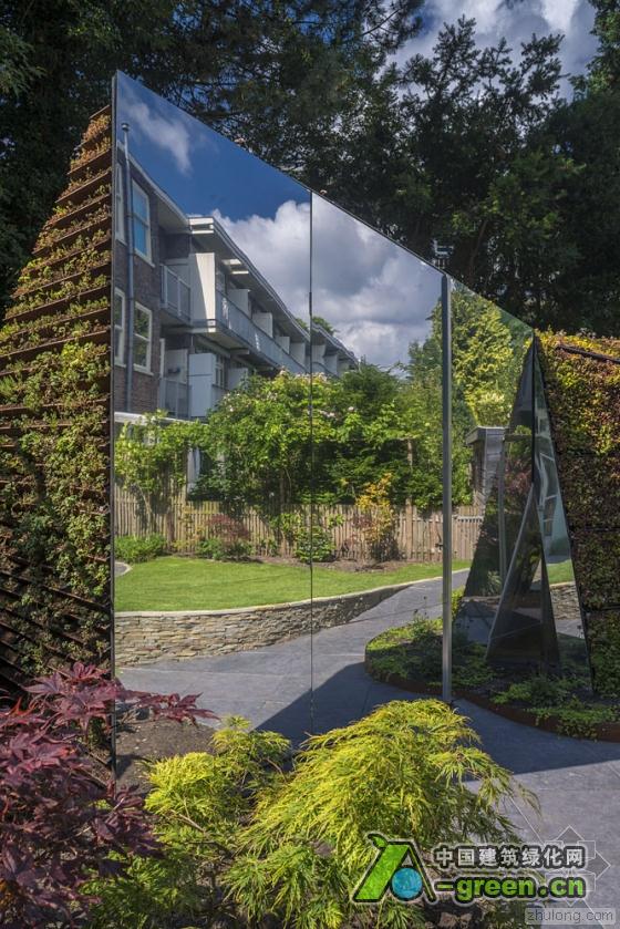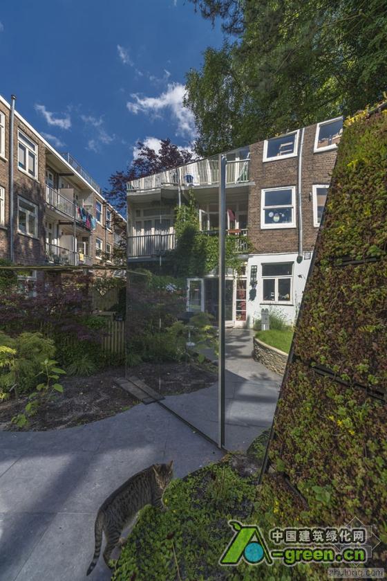 为了加强该花园的视觉动感性,设计团队对室内生活空间进行了对角设计,从左下角开始,就像太阳光线射进来的线条一样直达右上角,后取角并没有做类似的设计。另外,设计团队在小工作室的表面镶上玻璃镜面,这样便加强了园林的视觉深度,使得整个花园看起来更加深邃和神秘。值得一提的是,该景观的几何形状也是经过专门设计而成的,为的是与周边的环境相匹配。