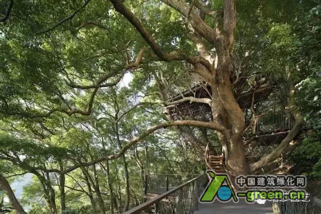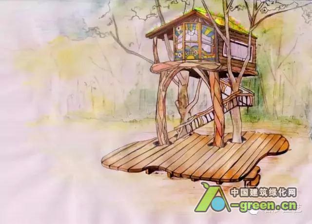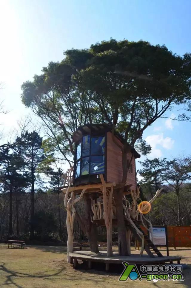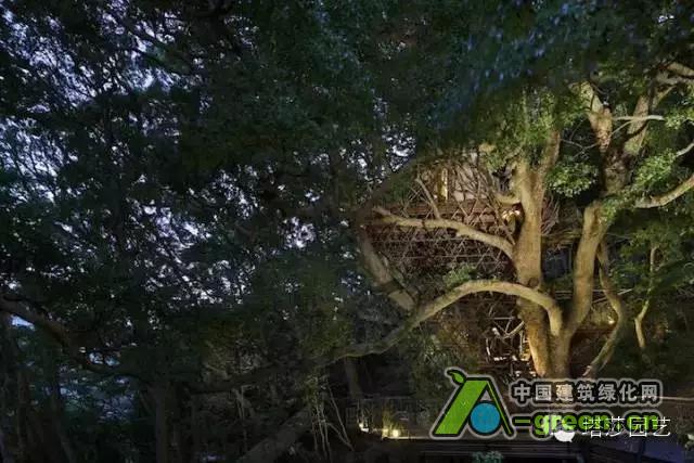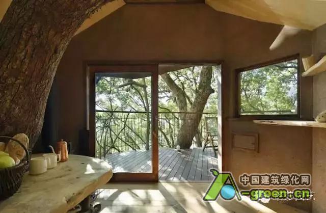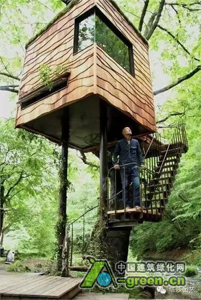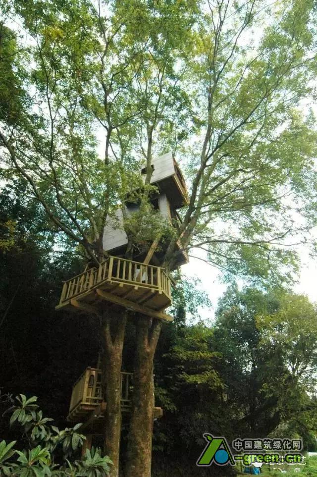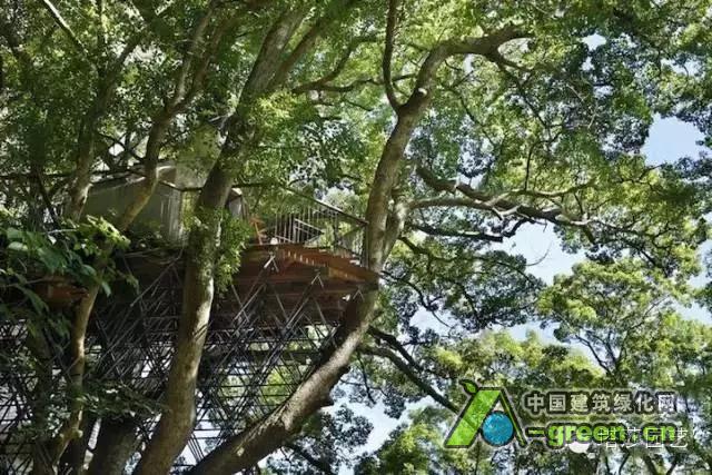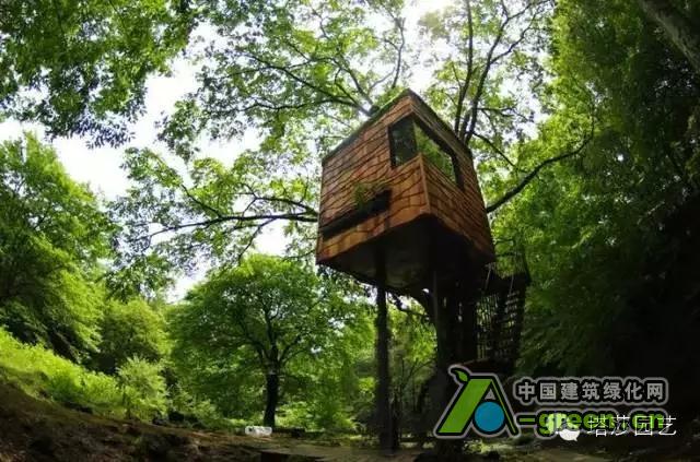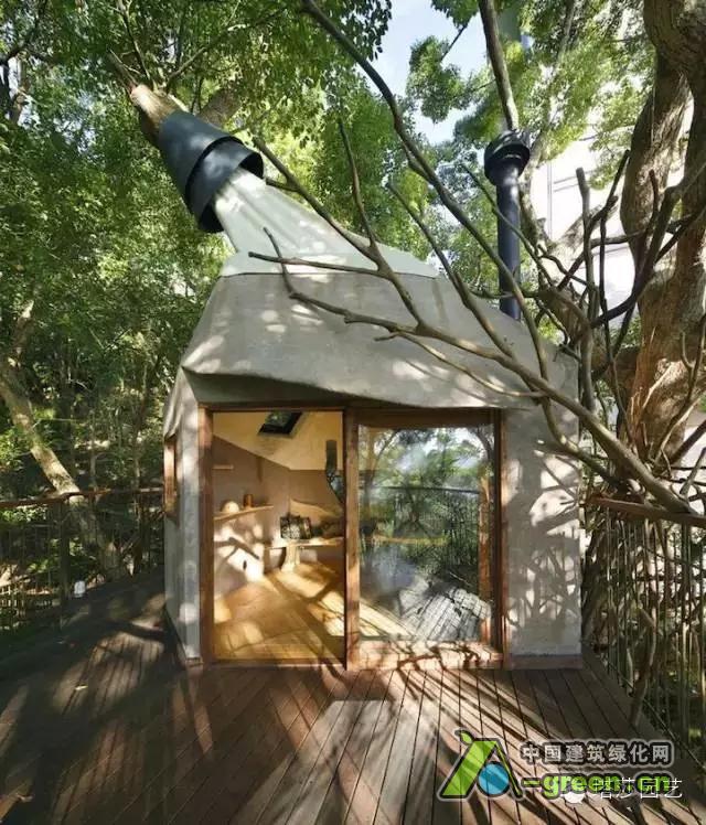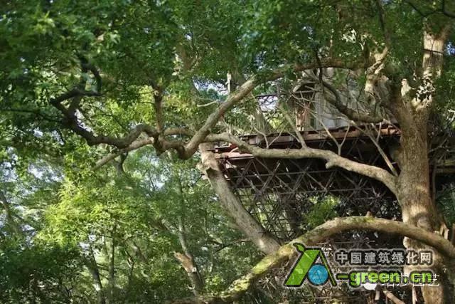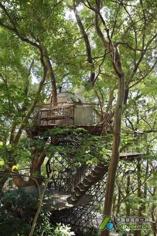 被树木所环抱的树屋,传达出浓浓的自然概念。