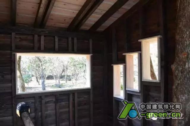 树屋有三个长方形的装饰窗。