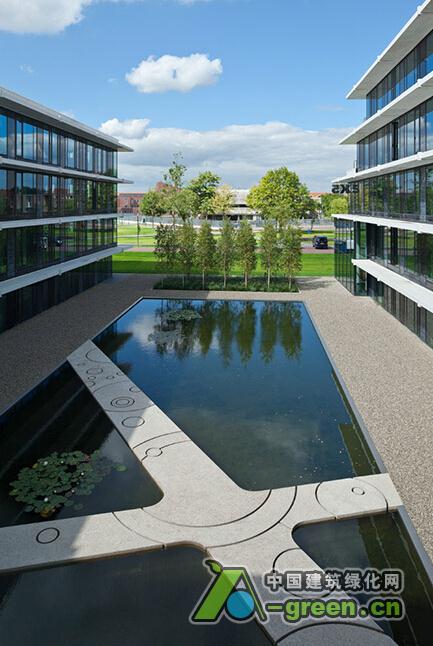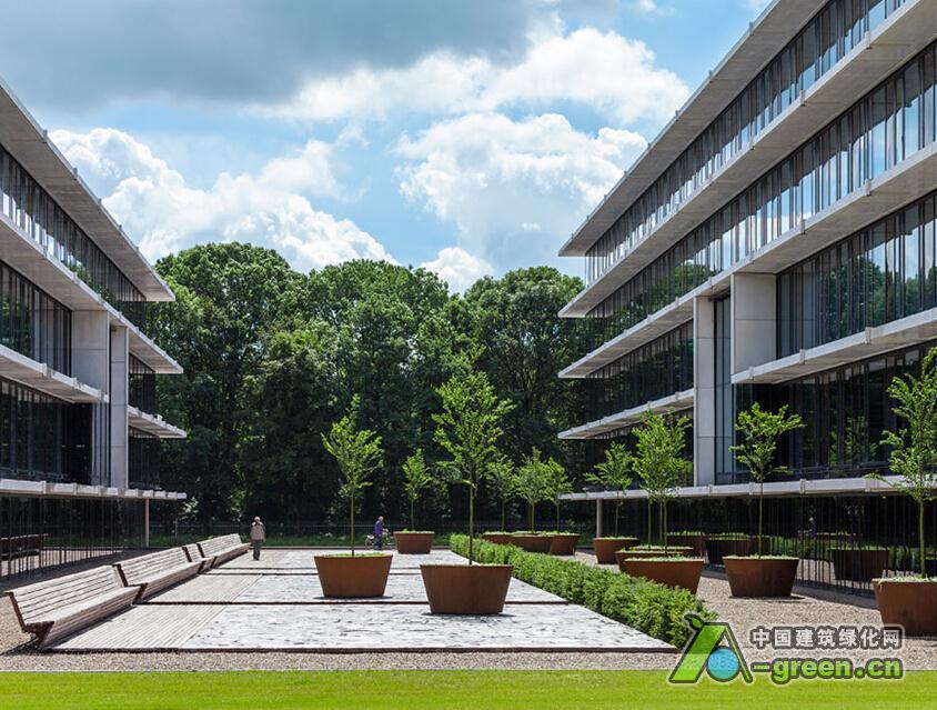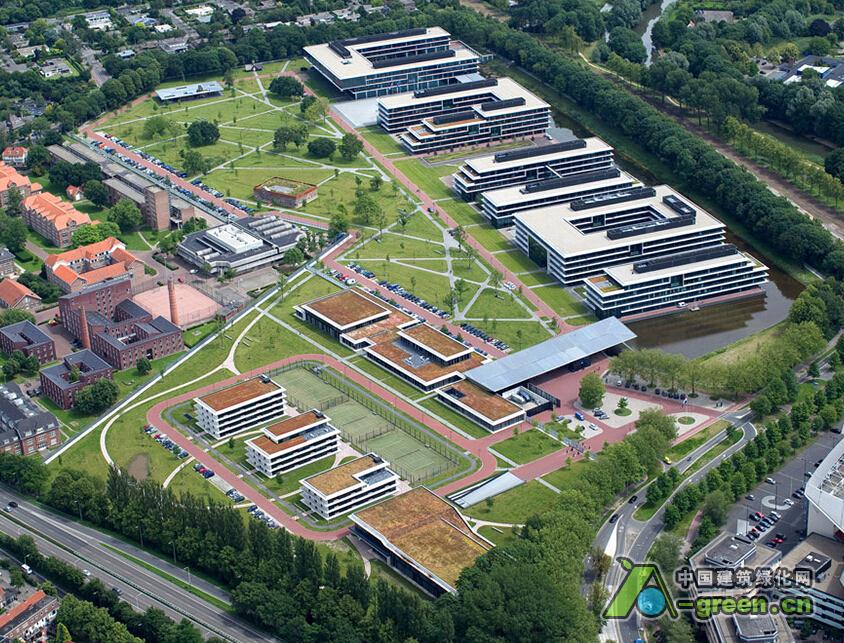 一区内有一系列的办公大楼运行,以垂直于主要的道路的方式排列。设计者还在建筑的周围邻近Kromme Rijn河的一侧引入护城河的设计理念,象征城市的防御形式。不同的建筑中间一共分布了七个花园以及一个阅兵场,它们都有自己各自的特点和布局。 二区则旨在创建一个与相邻的大学相呼应的空间结构,因此借鉴了相邻大学的规模和结构特点。该场地主要由石板道路、大草坪和大树组成景观框架。三区的中央公园则起到城市的绿色核心的作用,帮助维持复杂的生态平衡。