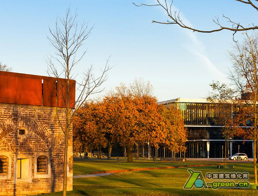 根据场地的分布格局,Kromhout军营景观设计项目是由三部分组成的:一区称为the Strip、二区称为the Field,三区则是中心的公园区。 办公楼位于靠近公路的一区,交通便利;而住宿和训练设施都位于场地的二区。两者由中心公园区连接在一起。