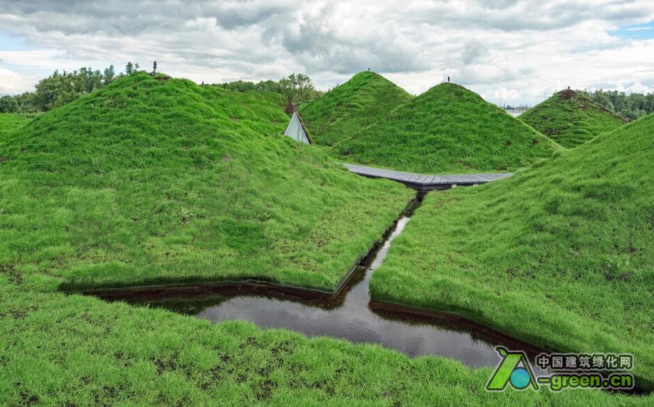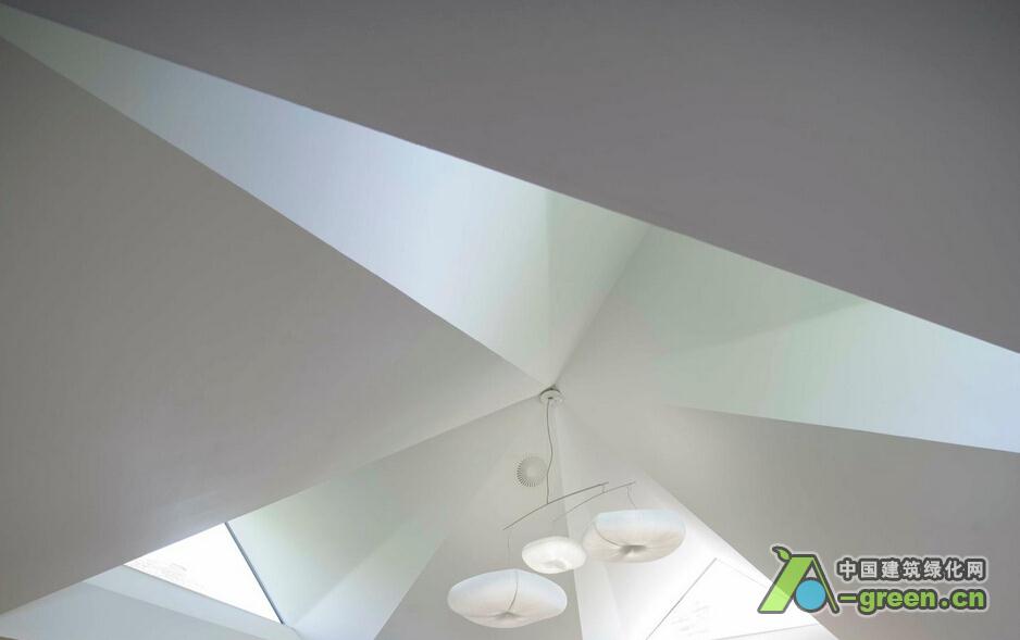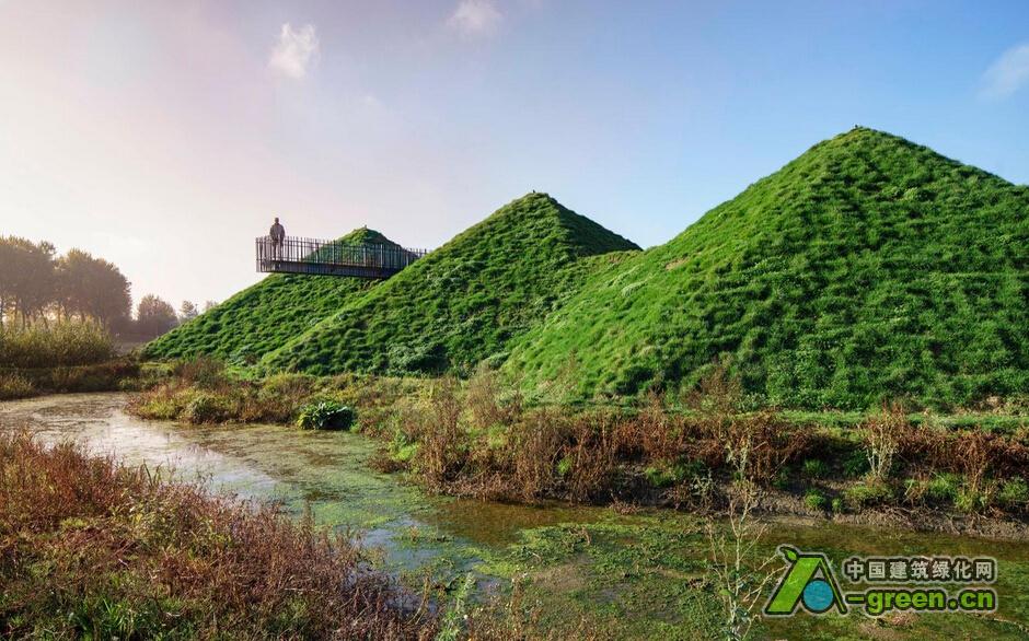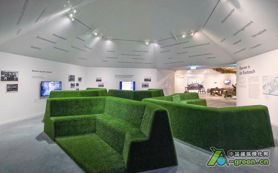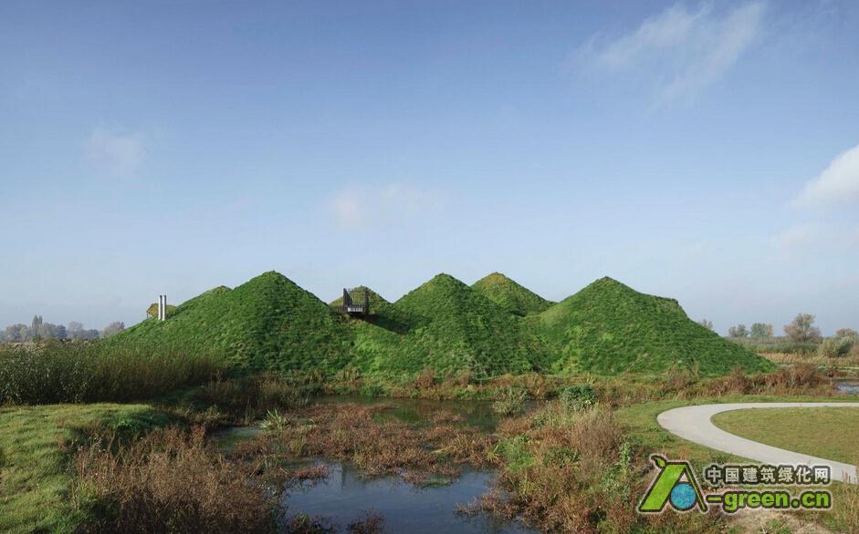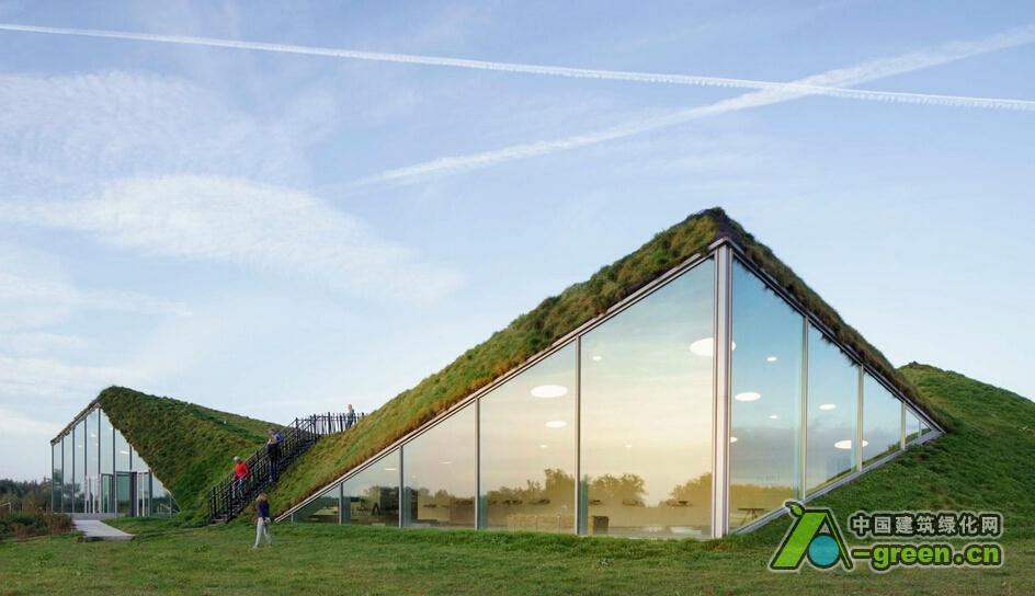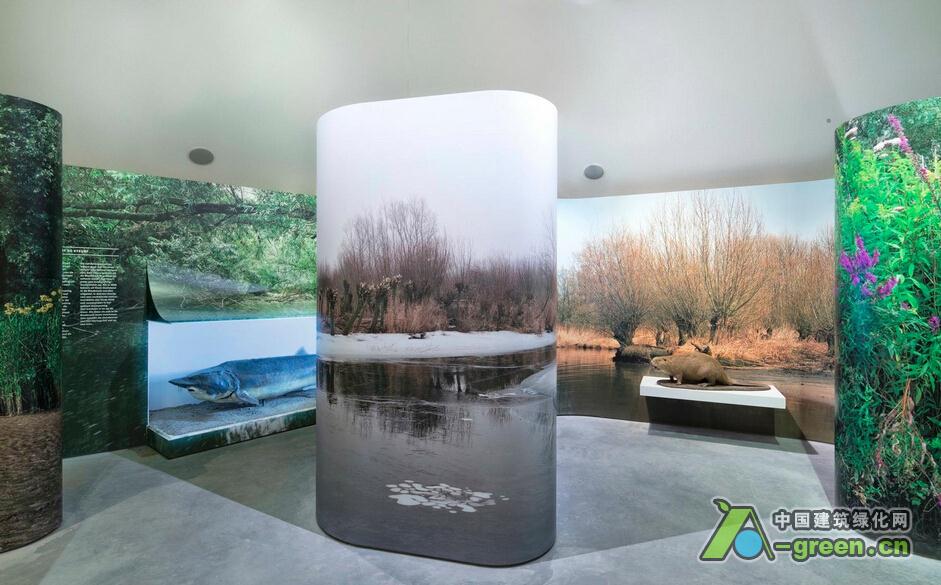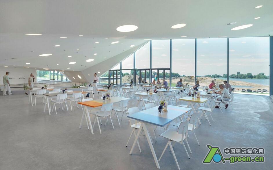 经过八个月的整修之后,建筑保留了原有的六边形结构,在西南侧增加了1000平米的翼楼。以大面积开窗为特征,翼楼向博物馆花园敞开,包括一个可以欣赏到周边水域景观的有机餐厅和一个临时展览空间。博物馆的新老建筑都被土垒包围着,屋顶覆盖了绿草和植物。屋顶雕塑般的形态像艺术品一般增加了该地区生态价值,在周围景观映衬下显得非常突出。新翼楼和现有的体量都在最大程度地减少能源消耗,配备了最先进的耐热玻璃,不必要安装百叶窗。西北侧的土垒和绿色屋顶起到绝缘层和热缓冲的作用:在寒冷的天气里,生物质炉灶通过地板加热维持在舒适的温度上;在炎热的季节里,河水通过同样的管道使建筑降温。这是荷兰首个通过柳树净化生活污水的项目,柳树吸收废水,废水中的氮和磷酸盐作为营养可以促进柳树成长。水经过净化以后流入邻近的湿地,最终流入河流。如果柳树被锯掉或干枯而死以后,木材可以作为博物馆生物质炉具的燃料或用于其他目的。