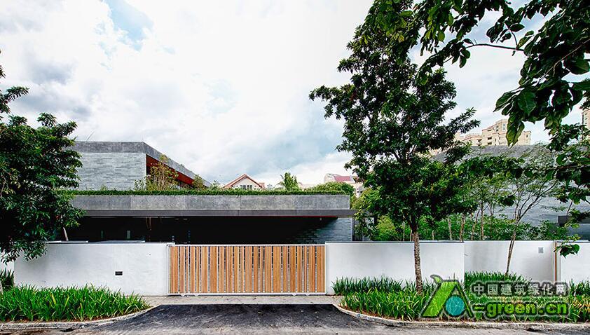 通过在当地苗圃精心挑选并栽培的植物,让两栋住宅仿佛置身于森林之中,和邻居的分界,则通过浓密大叶的植物完成。往入口方向的植物逐渐变疏,将其素雅的立面展露出来,以委婉含蓄的方式表达丰富细腻的情感,给人以回味无穷的想象空间。
