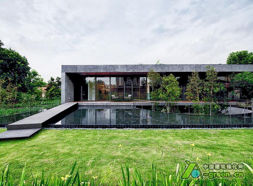 在探索庭院体量变化过程中,我们和建筑师FARM紧密的合作,把建筑和景观结合为一体,让景观作为建筑空间过渡的媒介。从建筑伸出的墙体将室外的空间定义为户外书房和镜面水池。而同样的设计概念我们也运用到二楼之上,通过一片薄薄的景观桥,把主人房和草坪的空间联系起来。
