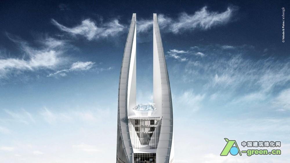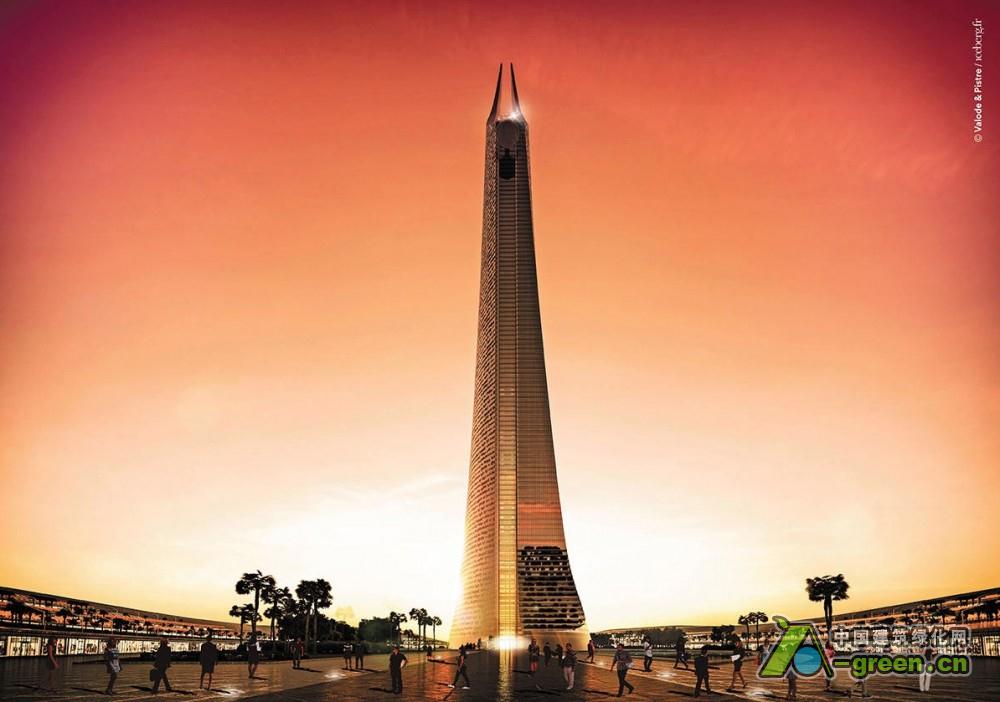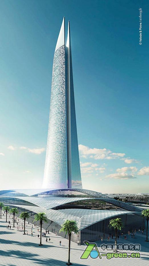 该项目占地25公顷,建筑面积超过30万平方米。它的许多元素都极具象征意义:建筑高度为540米,象征非洲54个国家,外立面的设计是从非洲各个种族的语言中提炼出来的,象征每个非洲人都是超高层的一部分;建筑共114层,其楼层数和古兰经章节数一致;建筑的立面将拥有1000 种图案,象征非洲大陆超过1000 种的丰富语言种类。作为一个综合体,这座摩天大楼承担了贸易中心、写字楼、酒店、餐饮、商业以及娱乐等功能。建筑设计优雅,让人联想到婚纱,从侧面看又像一支钢笔,象征着酋长书写未来而使用的工具。