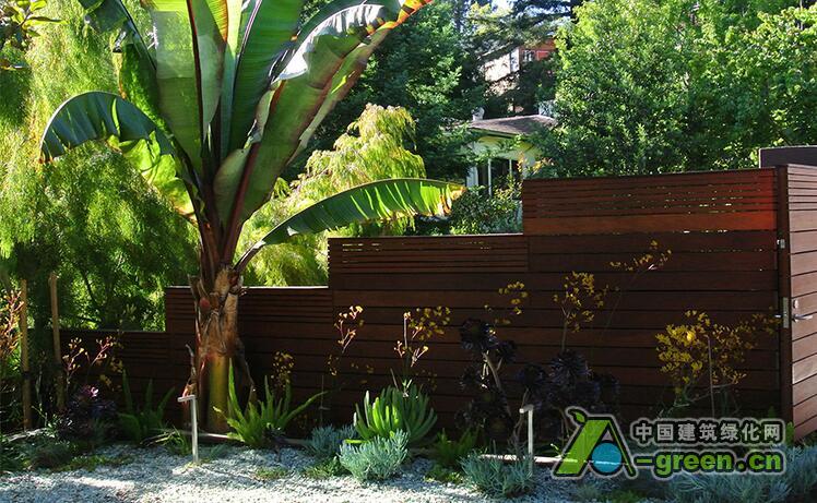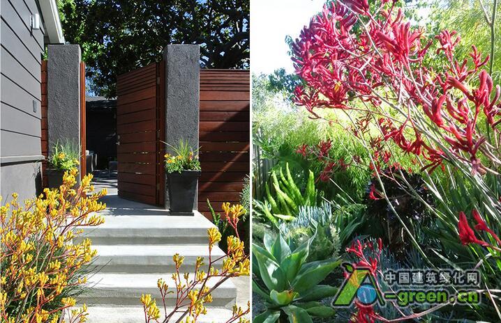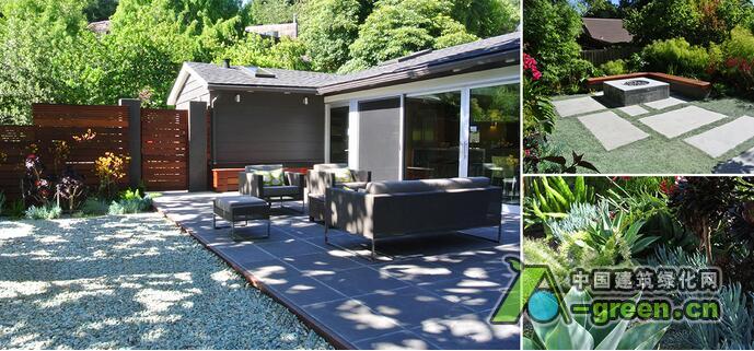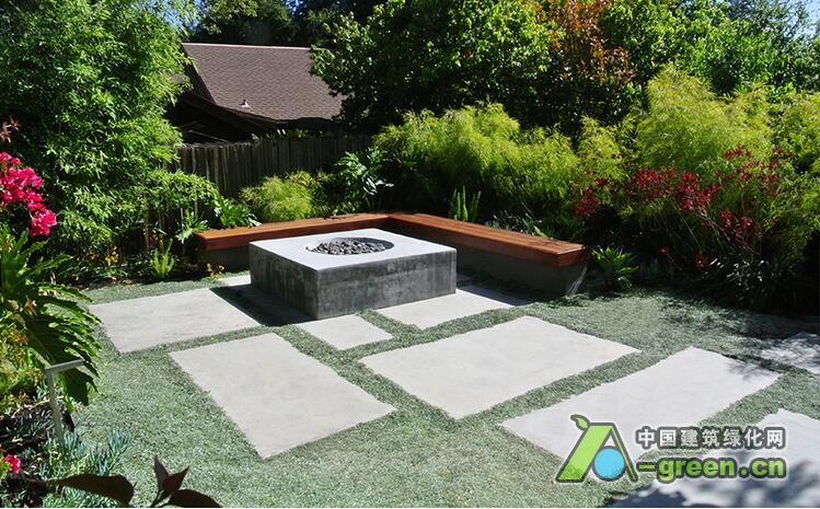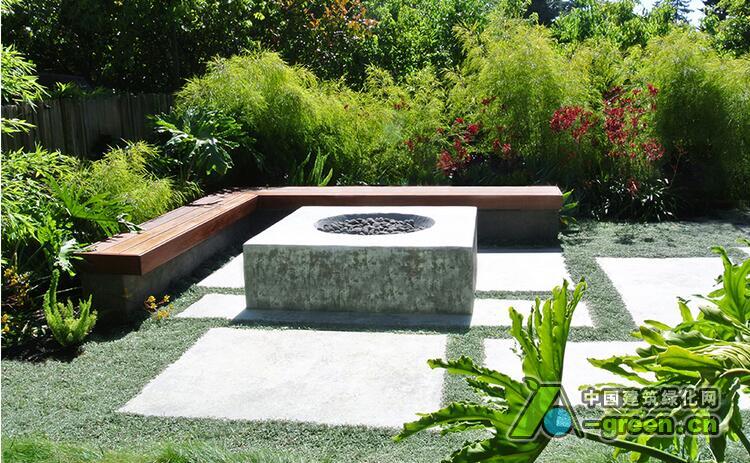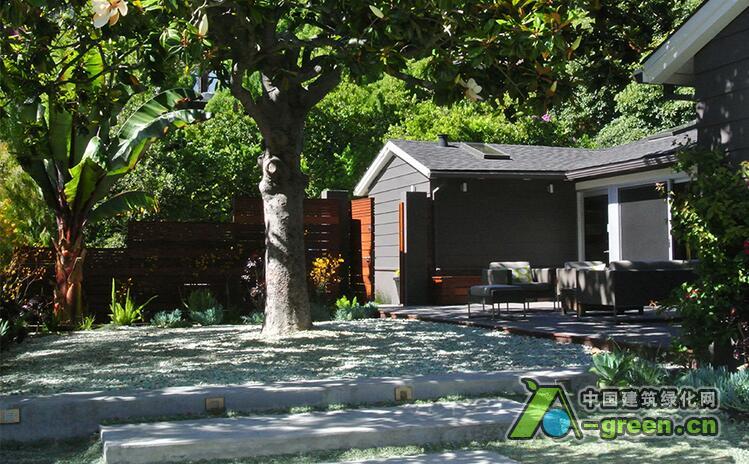 设计单位:Shades of Green事务所 所在国家:美国 作品地址:加利福尼亚州伯克利 摄影:Shades of Green事务所 这个后院环绕其中心的一棵玉兰树设计。其斑驳的荫凉正好投射在蓝绿色石头铺装地面上。该花园的四周种有多肉植物,后面就是现存的重蚁木栅栏。耐旱的Dymondia草坪中有一个大型的混凝土铺装路面,沿着其路线走会到达混凝土壁炉和长凳。这里的植物是巨大的、多叶的喜林芋,与细密的文竹相映衬。袋鼠爪花和叶子花也为该公园增添了色彩。