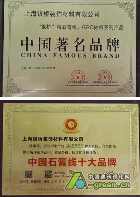 荣获“2015年度中国石膏线十大品牌榜首” 、“中国艺术造型石膏应用奖”“推动装饰石膏线制品行业发展突出贡献奖”“中国著名品牌”等。