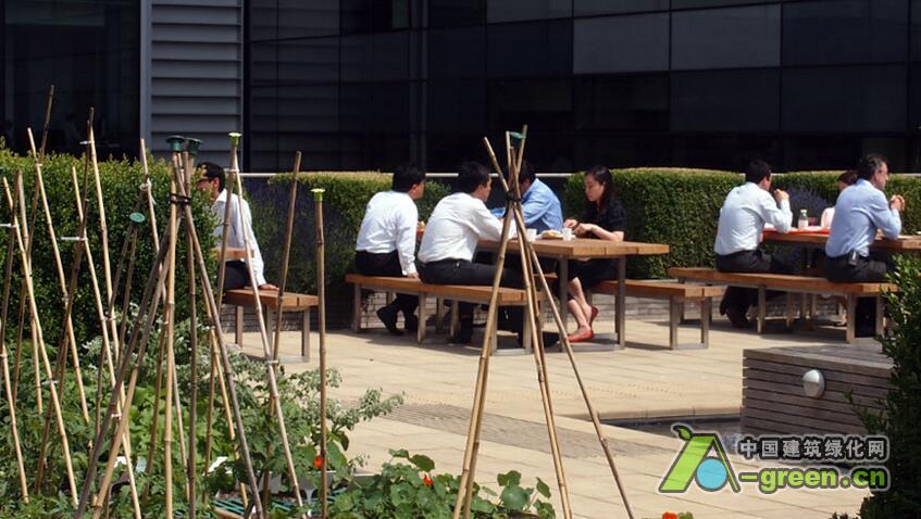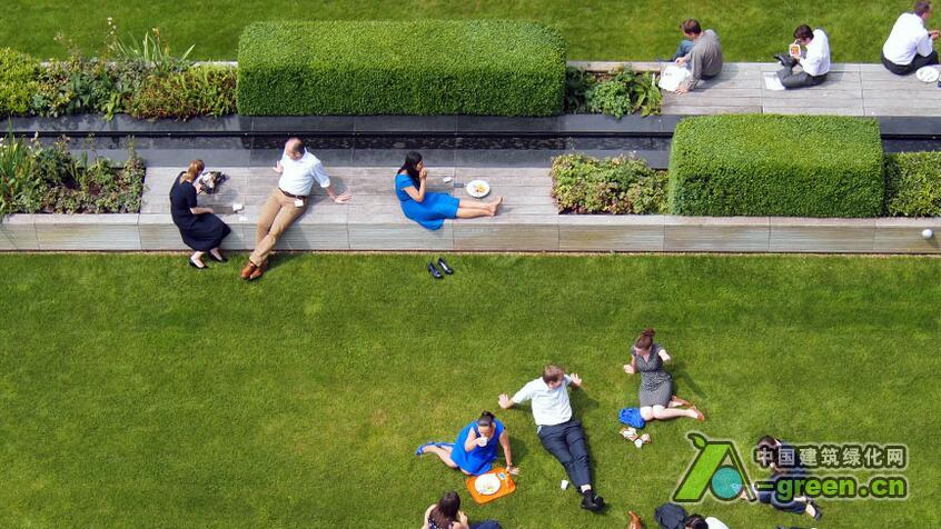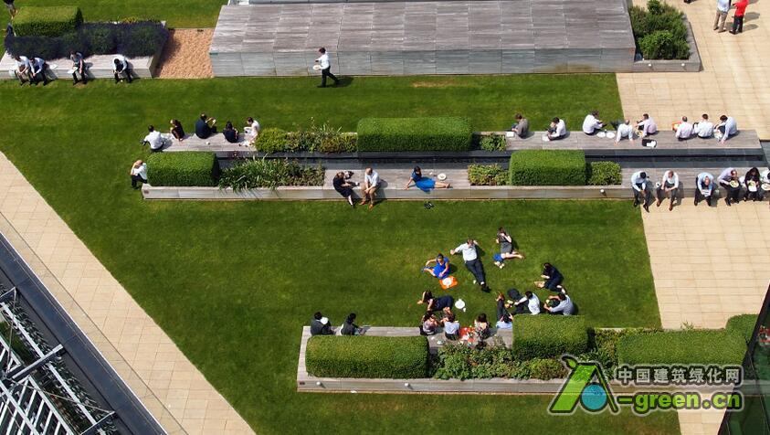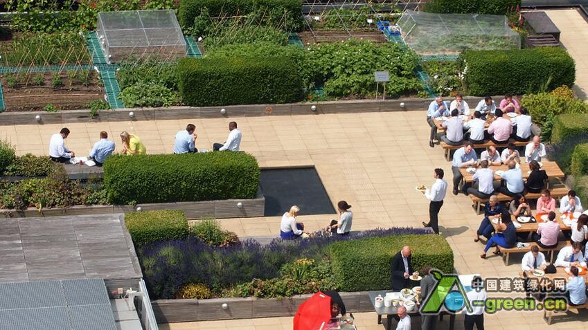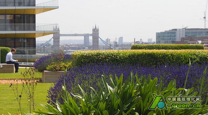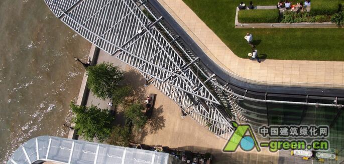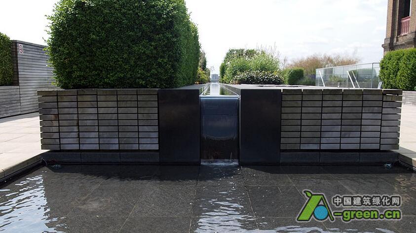 该建筑有2个阳台,分别是2500平方米以及500平方米。设计师对此进行巧妙的设计,最大化观赏泰晤士河上的景象。最大的一个花园包括2个线性水道,设有水池和小瀑布,构成主要的景观特色。伊罗科木用于建造花盆和座位元素,种植多年生植物、设置常绿绿篱,为全年增添色彩。约克石铺装路面提供休闲和活动空间,同时草坪可用于夏季使用。一部分露台让工作人员种植自己的植物和食物,在不能进入的屋顶区域设置蜂房。