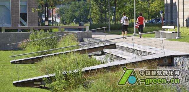 项目位于Sylvania极需整治的前工业用地,园区曾是一个主要通勤校园,开发周边景观用于满足使用汽车的需要。景观设计师从一开始就与客户和建筑师紧密合作,寻找组织建筑物的代替方式来打造高品质的户外空间,连结通勤校园各部,将沼泽湿地与走廊连接一起,提供更灵敏的雨水处理方法。