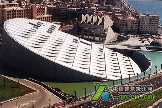 古埃及金字塔和新亚历山大图书馆使埃及有幸拥有世界上最古老和最现代设计中最好的建筑。它像一块倾斜的巨大铁饼,也像一个巨型的电灯开关。亚历山大港的海边图书馆是新千年首个完美设计。它于2002年建成,灵感源于公元前3世纪建成的,最伟大的古典建筑的亚历山大图书馆。该建筑的倾斜设计寓意它是地中海面升起的第二轮太阳。圆形大厅可同时容纳800万本书。
