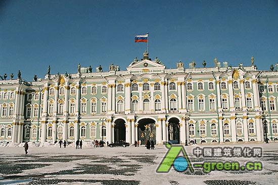 冬宫被认为是俄罗斯非凡的艾尔米塔什博物馆的外壳,坐落在圣彼得堡内瓦河畔,由设计师拉斯特雷利为俄国沙皇设计修建的冬日住所。冬宫占据整个街区,它具有巴洛克时期的所有奇思怪想的设计风格。屋顶边缘的雕塑像是要一头扎进内瓦河的潜水员。不难想象冬宫这个城市的标志建筑的修建向世界展示俄罗斯也有媲美欧洲的美丽建筑。