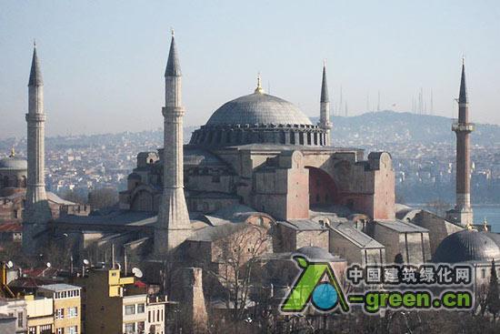 索菲亚大教堂是伊斯坦布尔中心的地标建筑,周围的四个尖塔好似飞往月球的火箭。它作为一个东正教堂,始建于公元6世纪,后来作为清镇寺,从1935年又用作博物馆。这个巨型建筑在仅仅5年内就得以建成,恢弘的穹顶宽约31米,高56米。穹顶下方基身满是窗户包围,所有从里面往外看,感觉穹顶轻浮于在建筑上。