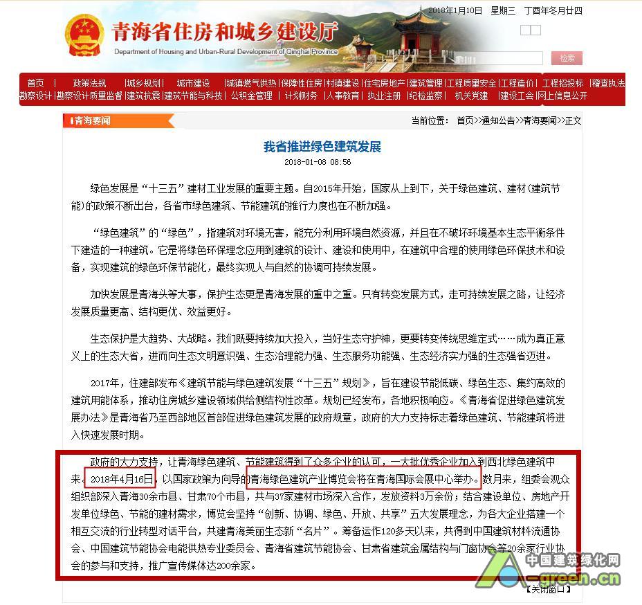 政府的大力支持,让青海绿色建筑、节能建筑得到了众多企业的认可,一大批优秀企业加入到西北绿色建筑中来。2018年4月16日,以国家政策为向导的青海绿色建筑产业博览会将在青海国际会展中心举办。数月来,组委会观众组织部深入青海30余市县、甘肃70个市县,共与37家建材市场深入合作,发放资料3万余份;结合建设单位、房地产开发单位绿色、节能的建材需求,博览会坚持“创新、协调、绿色、开放、共享”五大发展理念,为各大企业搭建一个相互交流的行业转型对话平台,共建青海美丽生态新“名片”。筹备运作120多天以来,共得到中国建筑材料流通协会、中国建筑节能协会电能供热专业委员会、青海省建筑节能协会、甘肃省建筑金属结构与门窗协会等20余家行业协会的参与和支持,推广宣传媒体达200余家。