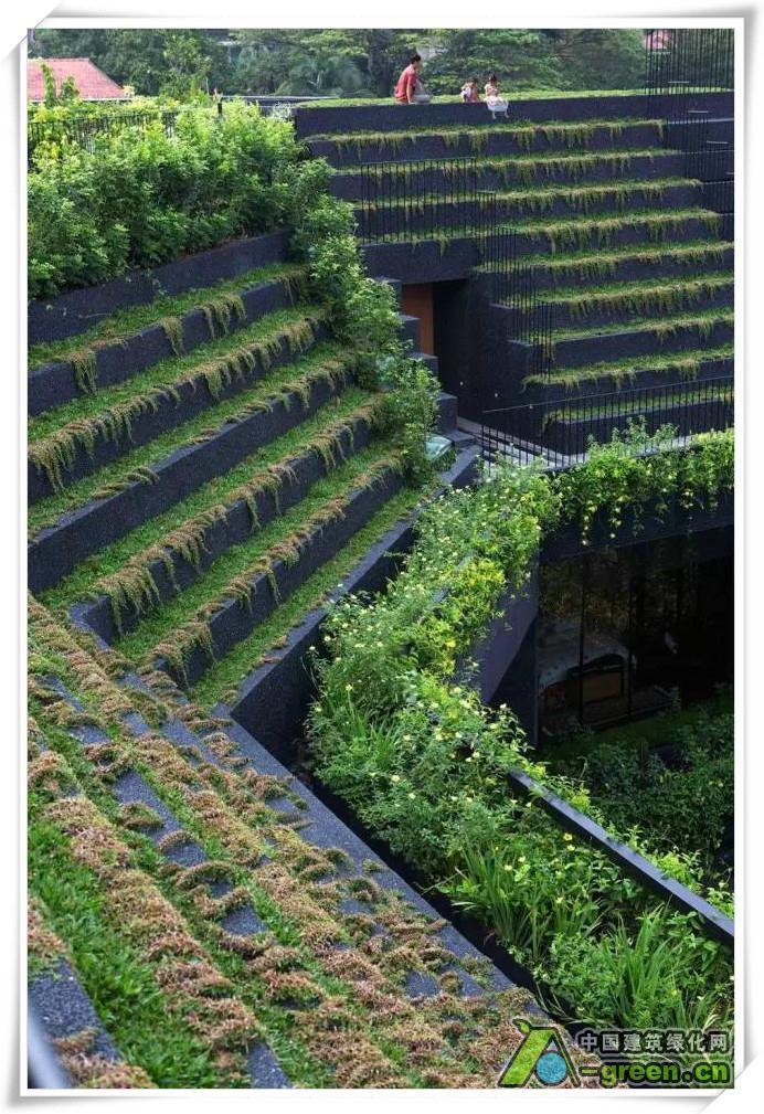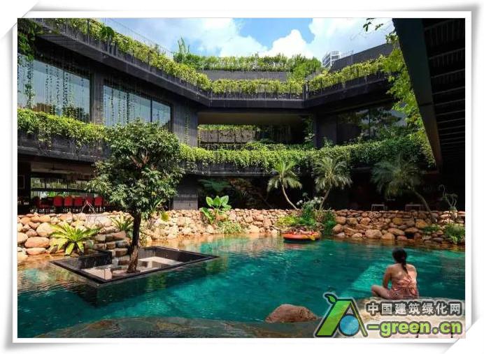 这是一座会呼吸的房子,绿植梯田的楼顶,四合院式客房结构,再加中庭泳池,这里简直就是一个天然氧吧!在高宇林立的城市,这样的屋顶,简直美爆了~